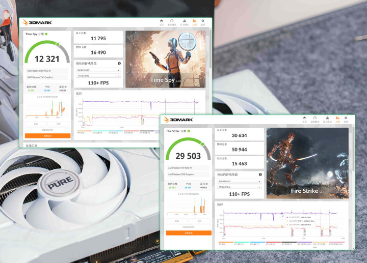 基于 DirectX 12 的 Time Spy 总得分为 12321 分,其中显卡分数 11795分,CPU 分数 16490。