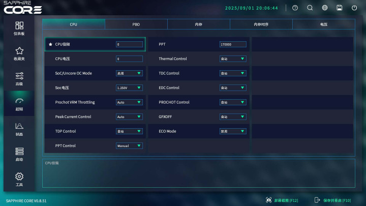 ▼蓝宝石新版 BIOS (Sapphire Core )目前还属于测试阶段,覆盖的版型主要包括 B650 / B850 芯片组的氮动、极地、脉动、Sapphire 系列