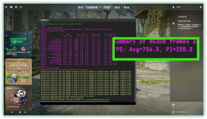 ▼网游测试利用《CS2》来进行,这也是 9950X3D 基本盘,在 1080p 分辨率及低画质设定下,这套配置跑出了 754 平均帧,P1 也在 288FPS,数据相当夸张,甚至比 265KF + RTX5070 的组合都强。