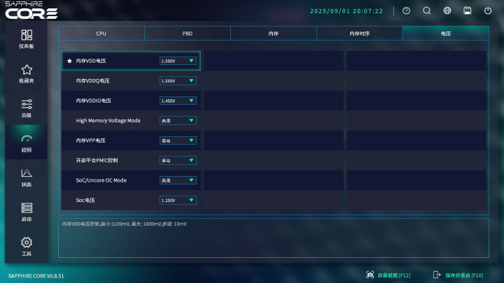 ▼电压这块也很直观,喜欢内存超频的话相当实用。
