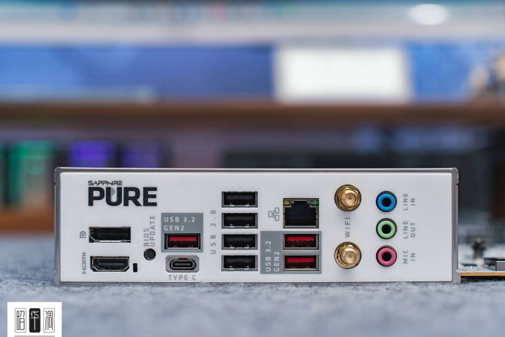 ▼后置接口方面,视频输出同时提供了 HDMI 与 DisplayPort 接口。数据传输方面,配备了 三 个 USB 3.2 Gen 2 Type-A 和 一 个 USB 3.2 Gen 2 Type-C 接口,均提供 10Gbps 带宽,足以应对多个高速移动存储设备。此外,四个 USB 2.0 接口为键鼠、音频设备等外设提供了稳定、低干扰的连接。网络方面,则板载了 2.5G 有线网口、WiFi 6 无线模块及蓝牙 5 功能,实用的 BIOS 更新按键也没落下。