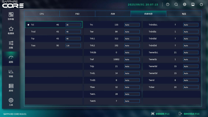 ▼所有内存时序参数均在单 一页面内开放并集中展示,直接输入即可完成调节,此外,系统还具备智能重置功能:当输入值被清空或设为“0”时,对应选项将自动恢复为 AUTO 状态,极大地简化了超频爱好者的调试过程。